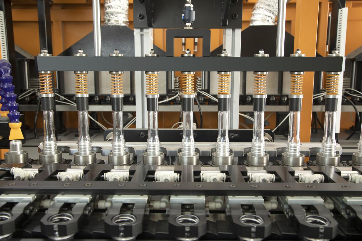 拉伸系統(tǒng):吹瓶拉升過程同樣使用伺服電機,因此極大地提高了吹瓶調整過程的靈活性、精確度(方便于更換各種瓶型的拉升靈活調節(jié))。